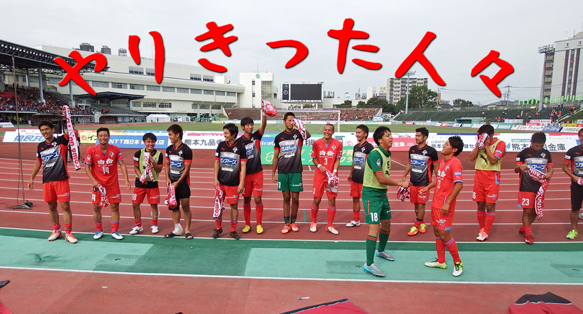 勝利の余韻はいつまでも続き、こういう日はゴール裏を離れがたくてあちこちでサポの皆さんとおしゃべりして、なかなか帰らない。チャリで10分もかからない距離ってのもあってまだ水前寺の空気の中にいたいと思うんです。