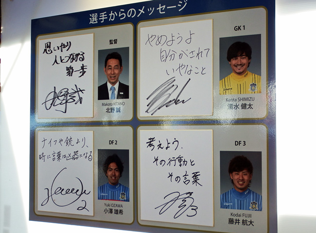 人権啓発ということで讃岐の監督選手のメッセージボードが掲出されていました。