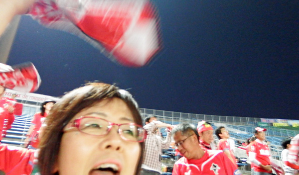 この角度からの応援は立体的で面白い。