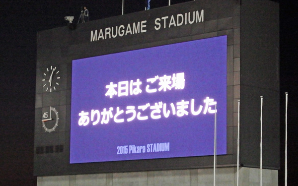 夜行バスが出る丸亀駅には、讃岐のホーム戦ではいつも見るアウェーサポさんへのウェルカムボードが今日もありました。場所柄、熊本の特産品売ってるのかと思われたりしなかったでしょうか(笑)