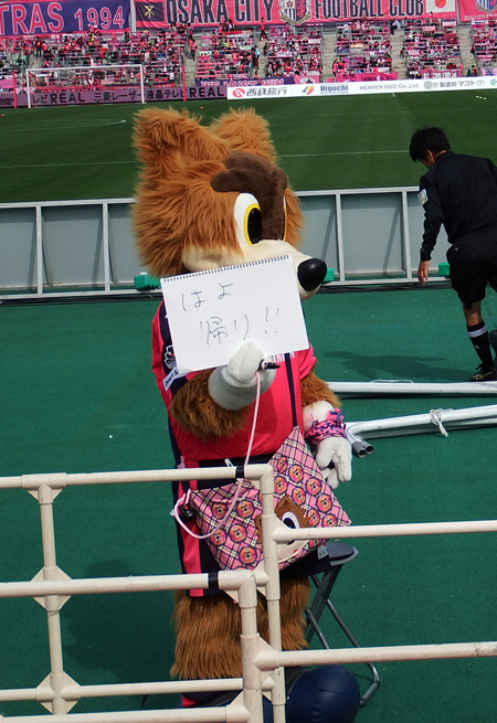 その後ろのマンションにはセレッソのフラッグやら幕やらが下がってます。でもきっとその部屋の住人はスタジアムに来ているんでしょうね(^_^)