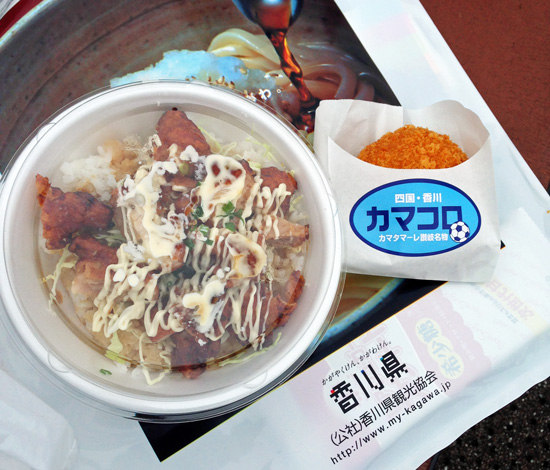 定番のカマコロと焼き鳥丼。エネルギー充填完了。