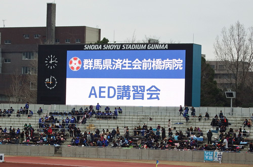 ところでこのチャリティマッチは故・松田直樹選手の追悼試合でもあって、入場チケット代のうち500円はAED普及のための募金に充てられることになっていました。