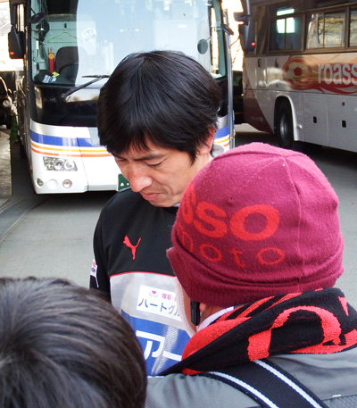 最後に出てきて熊本サポの大合唱で呼び止められたダンくん。勝てなくて笑顔もこのくらい。でもファンサービスしてくれて本当にありがとう!