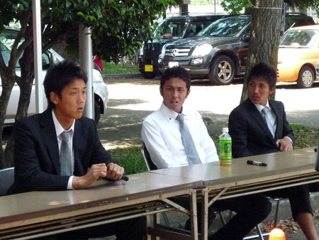 試合ではまだ見ぬ彼らですが、赤馬衆ファンはそんなこと気にしません。ピッチで活躍するようになったらサインもお預けになるんだから、今の内にもらっとかなきゃねー!(^^)/