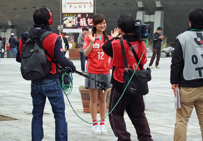 ロアッソ女子マネのみのりちゃん。今日もカワイイので周囲はオジサポだらけに。