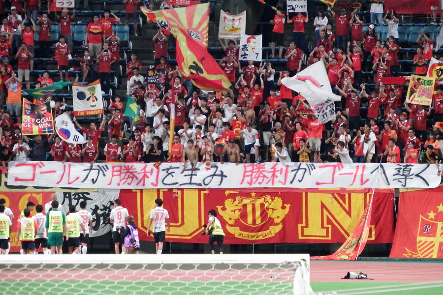 サイドから見てどうだったか知らないけど、名古屋の選手が打った瞬間こちらに向かってくるボールスピードがものすごかった。今のレベルで赤馬衆の反応が遅かったんじゃないよコレ。