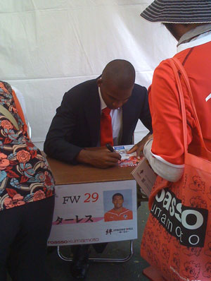 お店に立つなり子供達にサインせがまれています。子供目線にしゃがんでくれる優しさに拍手♪