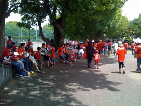 当日蒸し暑かったので、みんな自然に木陰でゴハンです。