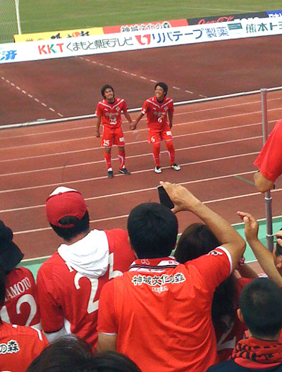 試合後、選手が最初に挨拶に行くバクスタで発生するロアッソコールはもうふつうの光景。