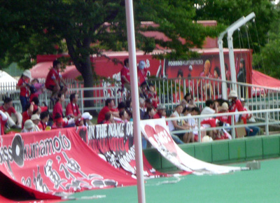 その後の展開は実は本城スタのゴール裏からは、ほとんど立体感を伴って観ることはできませんでした。もうただひたすら相手ゴールに攻め上がる赤馬衆の後押しに声を枯らしているばかり。