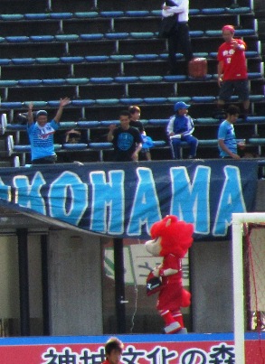 子馬は向こう側で横浜FCサポさんにボール投げ。