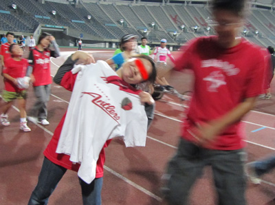 リレーの最後は参加グループ全員でKKWING内のピッチを囲むトラックを走ります。これが楽しみで最後までがんばった~♪