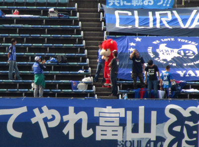 あちらのマスコットのぬいぐるみはまだ入手してないようですが、彼なら相手エリアに乱入してもみんな笑顔で迎えてくれるのが嬉しい♪ まずはアウェーサポさんをおもてなし。これがロアッソ熊本ホーム戦の変わらぬ信条でございます。
