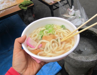 座る場所ないのでかんしょやさんの横でうどんすすってたら、次々と選手がお食事券持って脇目もふらずにグルメブースへ突っ走ってきました。
