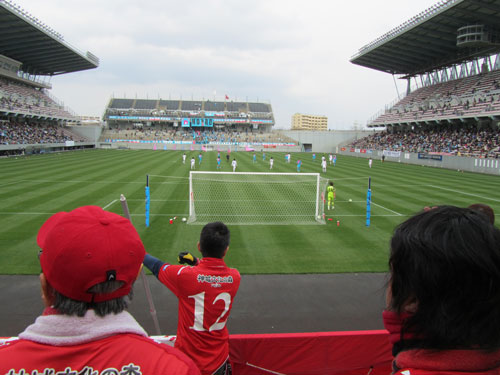 被災地への応援とは関係なく。厳しいようだけどこりゃJ1目指すチームの試合じゃないわよー!(-"-)