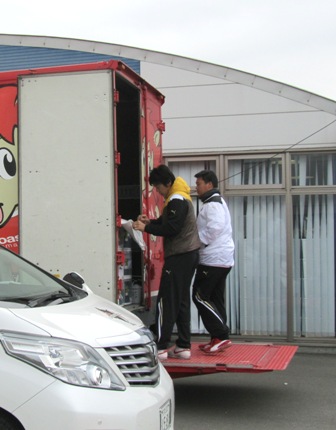 選手バス到着前にすでに会場入りして、ロアッソトラックでヨッシーマネにテキパキと指示していたタカギ監督。