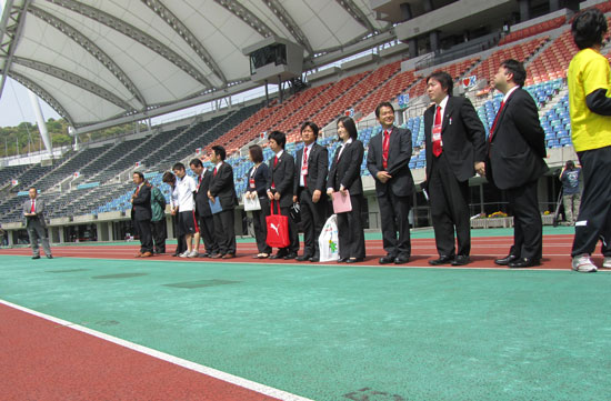 全体ミーティングのあとはピッチに出て各エリア責任者のACスタッフの皆さんとの顔合わせ。