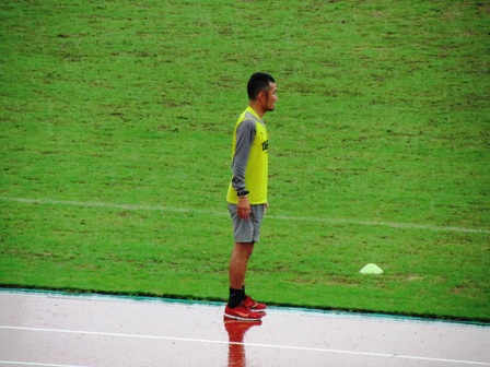 雨の中ずっと立ちっ放しで指示を出し続けていたウエミーコーチ。