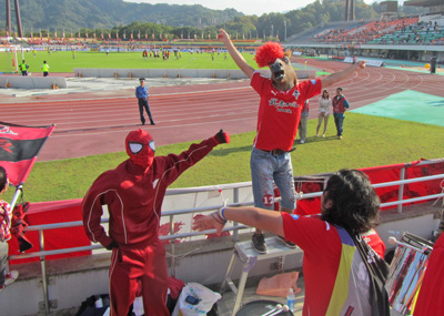 さてそろそろ試合も近づき、マスコットの皆さんがサポーターを煽りに出て参りました。