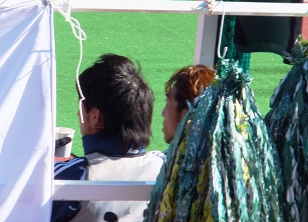 ベンチスタートのロアッソ卒団組は仲良く並んで試合を見てます。