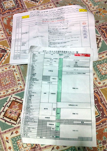 これがスタッフ用の進行書類。なにせ今回は前年よりもイベントが多くスペースも広く、自分の部署確認するのが精一杯(^_^;)