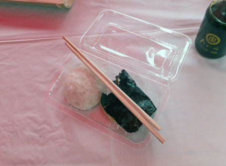そのまま元のテントに戻ってぜんざいとお餅をいただきながらお仲間としゃべってたら、監督がいらっしゃって「漬け物うまいですねー」と言いながら食べ始められたので、お茶注いだりしてしばし食べ物談義。