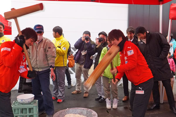 それにしても餅つきブースはファン&サポーターだけでなく選手スタッフにも大人気。みんなで楽しめる空間になってました。