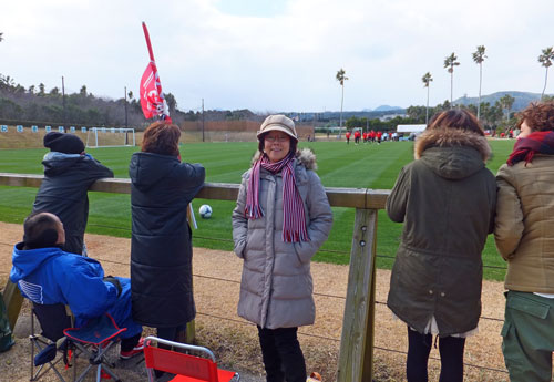 指宿に入ると去年は柏レイソルの黄色い幟が並んでいたあちこちに、今回は浦和レッズの赤い幟がはためいてます。