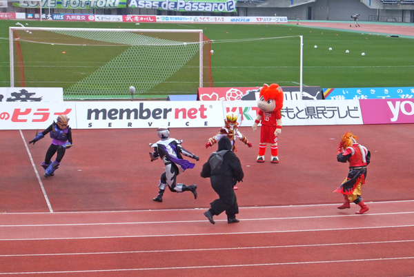 試合前に突然始まったヒーローショーの顛末。
