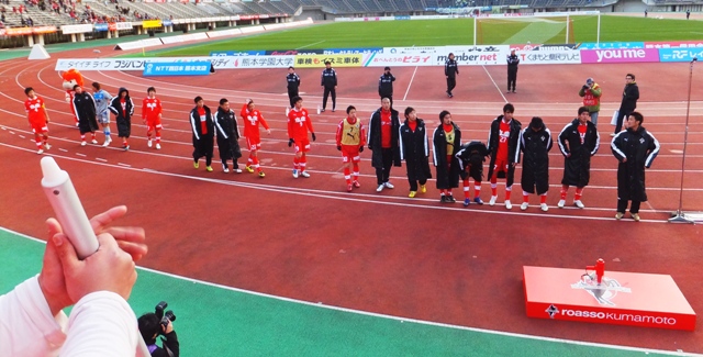 周りの熊本サポさんもみんなニコニコ。いいねーこういう光景こそJリーグです。
