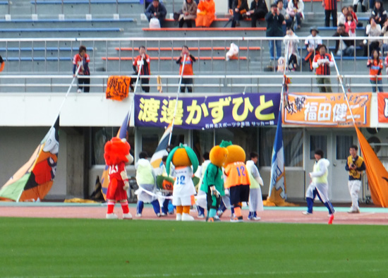 選手集合。他はともかくかつお人間くんとタルトくんが走れるのか不安。