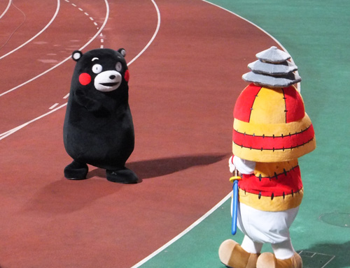 ゆるキャラのチャンバラを本気で楽しむ人々。熊本ゴール裏はこうでなくちゃね(^o^)