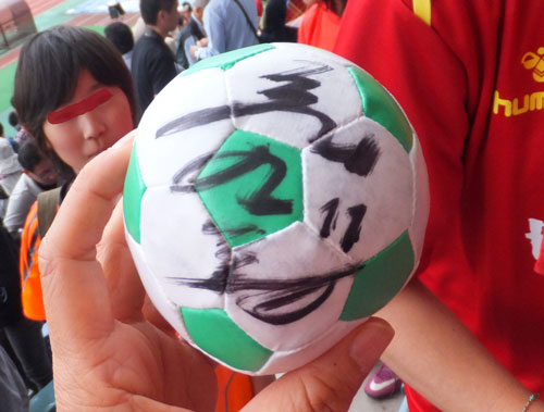 最後にINACの選手が客席に投げ入れたミニボール。