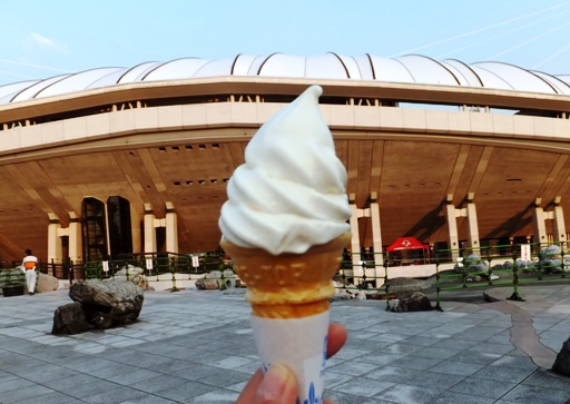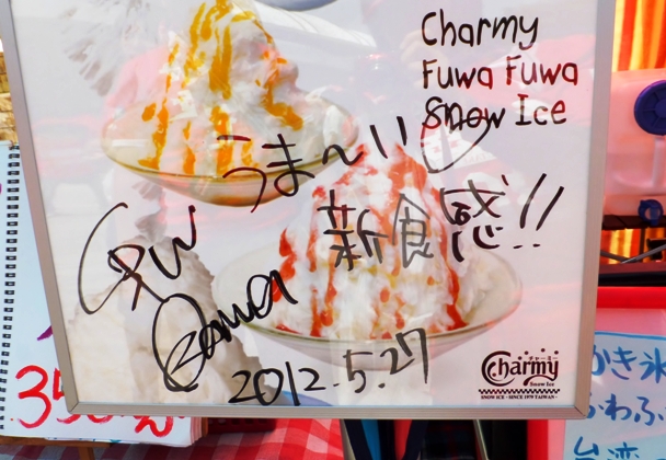 暑さに負けてフワフワスノーアイス。早くたべないとあっという間に溶けちゃう。