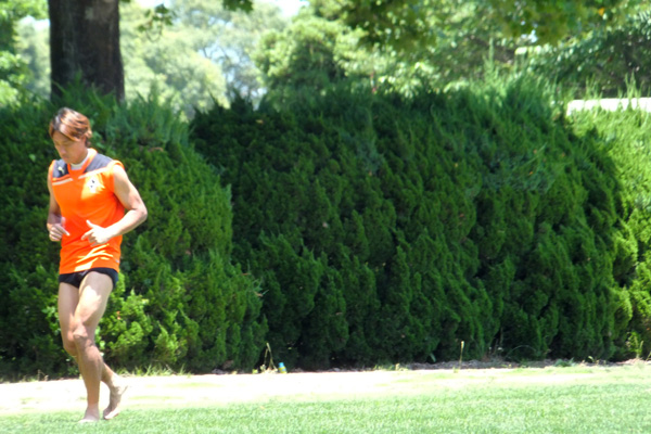 その後、水戸戦で一気にヒーローになったユウタロくんと二人でランニング。その途中身振り手振りで何かを伝えています。