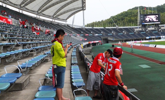 ここに来るまでにどれほどの葛藤があったか、サポ風情に知る由もありませんが、その海より深い事情を潜り抜け山より高く積まれたであろう自問自答を一つ一つ紡いでいって彼の出した結論が、ここKKウィングをホームスタジアムとしてサッカーをするというシンプルなチョイスだったのですから。