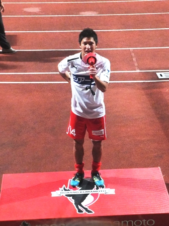 そして今日の試合はスポンサーである「くまもとのり松尾」さんのサンクスマッチ。各賞のメンバーです。おめでとうございます。