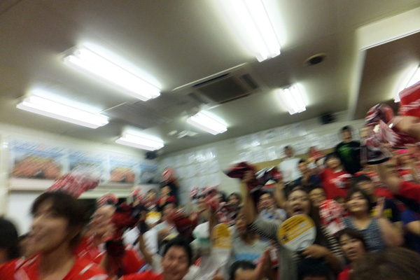 プチスタ内には主審の笛も聞こえないほどの歓声が響きわたり、全員が立ち上がってハイタッチ!またハイタッチ!!