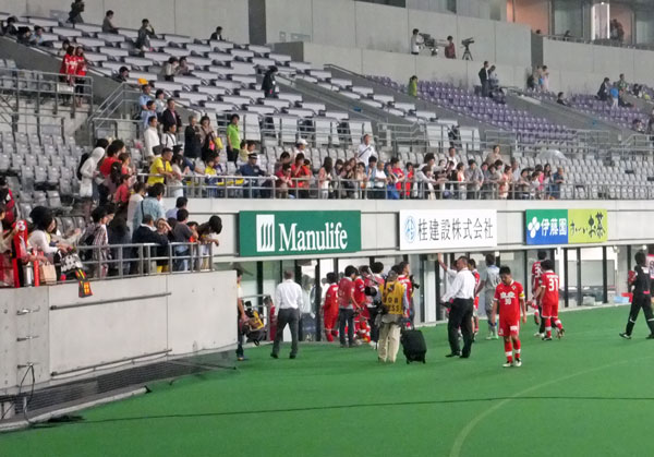 その彼らが、カテゴリ違いとはいえ90分間の試合で他所チームの選手コールに手拍子や声を合わせてくれて、試合後には熊本コールまでして下さって。