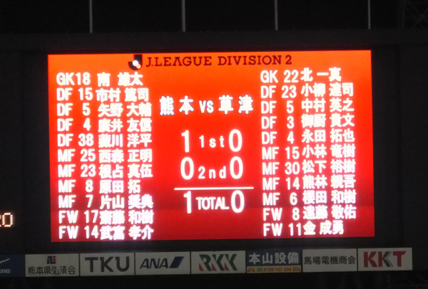 草津が意地を見せて攻め込まれゴール前の混戦から、ねじ込まれて同点。