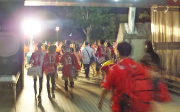 私がメインやバクスタから試合そのものが見づらい場所であるここに移ってきたのは、一体感を持って赤馬衆の後押しをしているオーラが、全員から同じリズムで噴出するのをどっぷりと体感できるから。