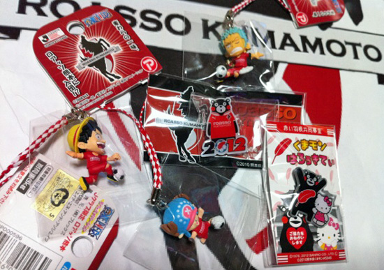 ちなみに、↓写真右下の「ロアッソくまモン」と「くまモン&キティちゃん」のバッジはそれぞれ500円の募金でもらえます。