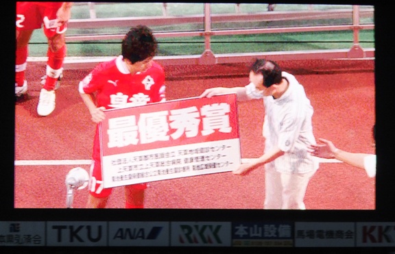 その間にマッチデースポンサー様による表彰式(ありがたいですね)やらスカパー中継のヒーローインタビューやら。