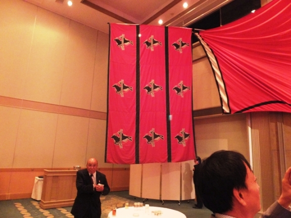 一番インパクトあったのはこの武蔵さんの横断幕。壇上に並んだ選手の多くが上目遣いで眺めていましたね。