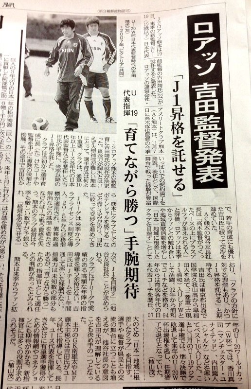 新監督の記者会見が行われ、これまでまったく接点がないように思っていた吉田靖という指揮官がロアッソ熊本2013をどういう舵取りでどこを目指して船出するのか、ようやく私にもわかってまいりました。